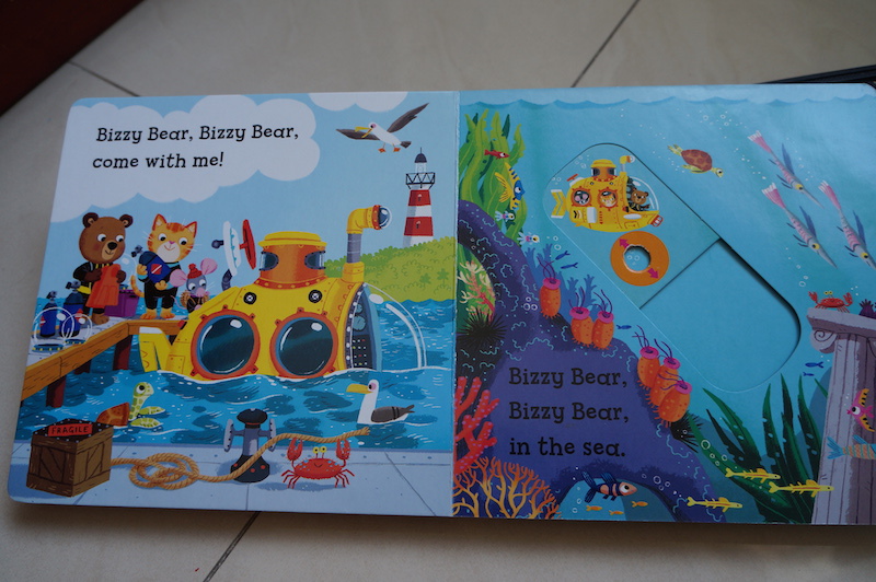 瀚瀚看的書@Nosy Crow的Bizzy Bear操作書系列。Pig and Posy The Little Puddle(3y1m)