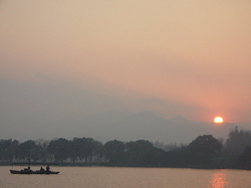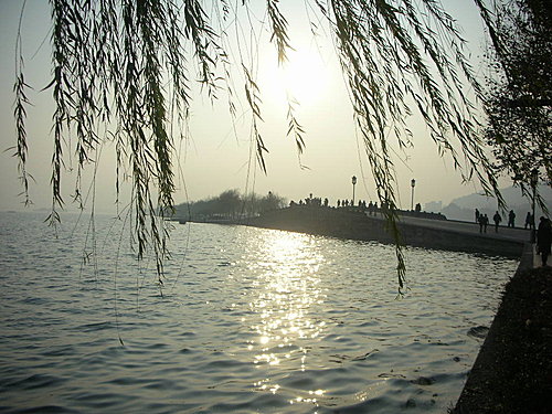 冬天來西湖,或許有不同的感受吧! 我們來的時候沒有下雪,看不到斷橋殘雪的景象,花也枯了,樹葉是蕭瑟的,不過還好,唯一不變的應該是西湖的湖景,夕陽還是美的.