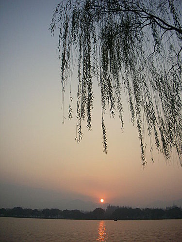 垂柳下的夕陽,西湖上的游船,不管春夏秋冬,西湖自成一幅風景畫.