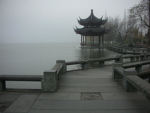 一早西湖就霧濛濛的,很冷,什麼都看不到,只有刺骨的冷風吹...