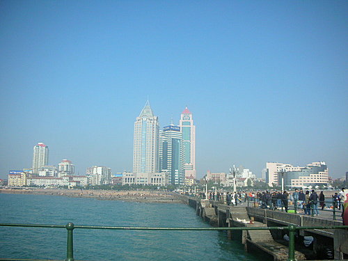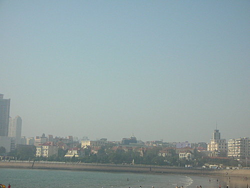 青島市靠近海邊,看地圖,青島有三個海水浴場,算是假日遊客休閒的地方.