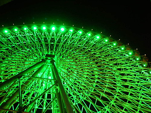 她只有一個顏色嗎?因為我只看到綠色,以為她會像東京台場那個摩天倫一樣變顏色...不過坐一次要 200元,是不是有點貴?