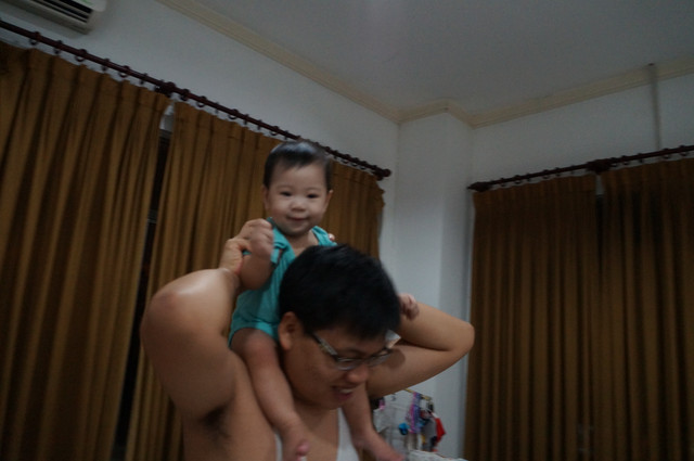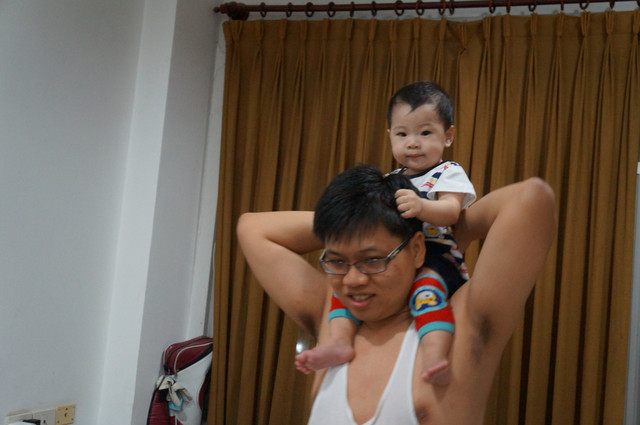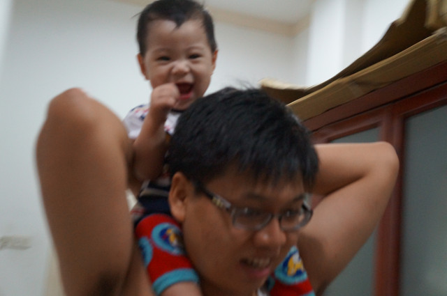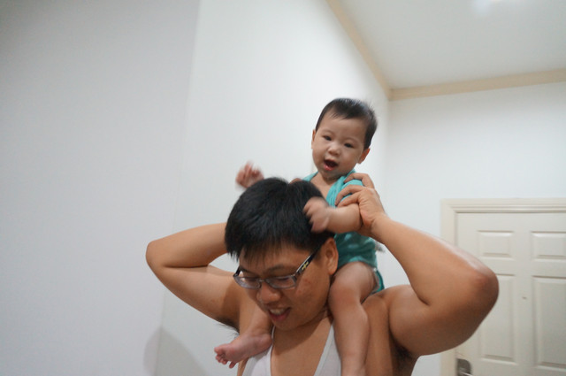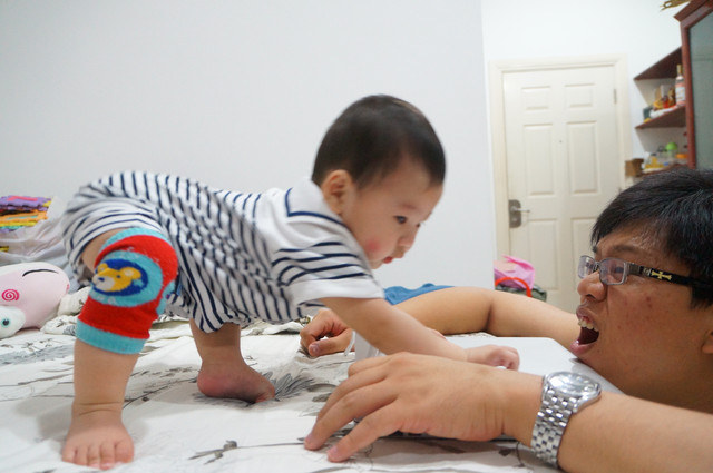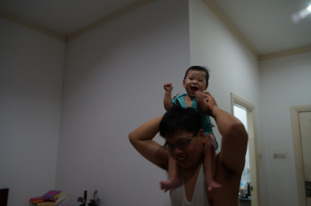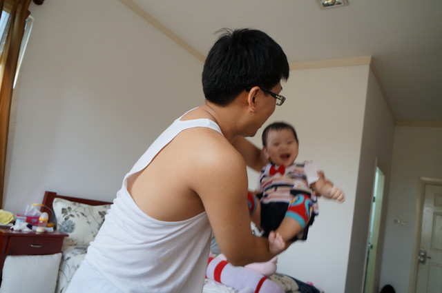 書說,小男孩在一歲前要多培養跟爸爸的感情,多一起玩樂,畢竟有些玩法媽媽做不到,譬如:這個