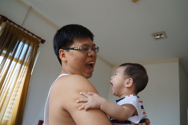 其實我很感謝我ㄤ幫忙照顧瀚瀚,白天上班都夠累的了,下班後還會接手幫忙,半夜瀚瀚起來哀哀叫,也會幫著換尿布或是餵奶。