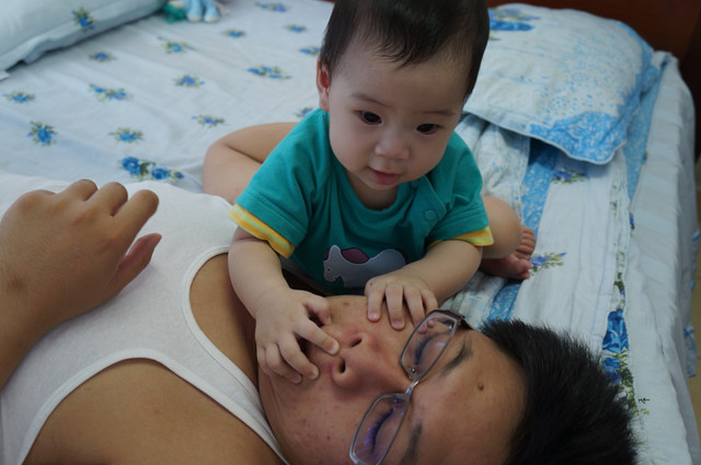 我想,瀚瀚真的很愛把拔,連發燒趴在把拔身上都很開心