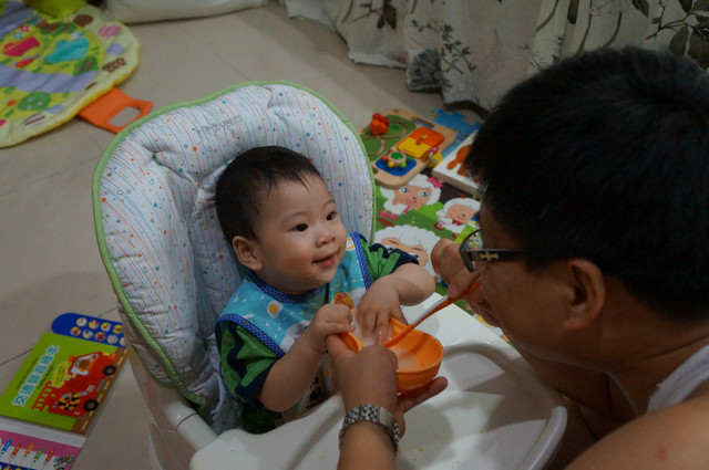 一邊喂還要一邊裝哈哈,製造歡愉進食氣氛