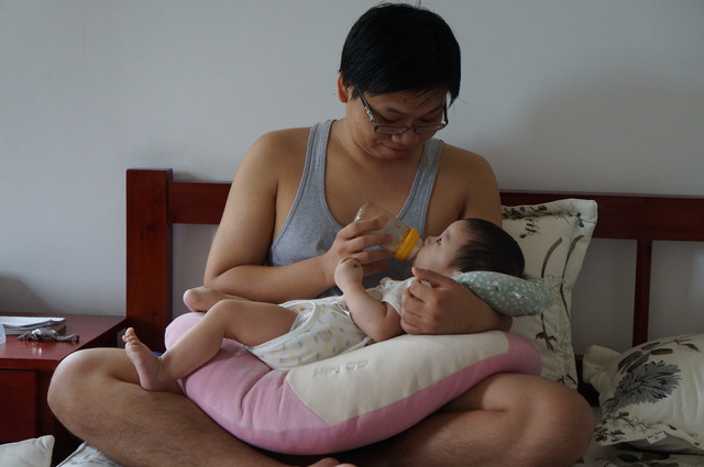 把拔餵奶也要伺候,表情要開心(這個把拔真的很盡職,嘴巴硬是開到耳朵邊哈。。)