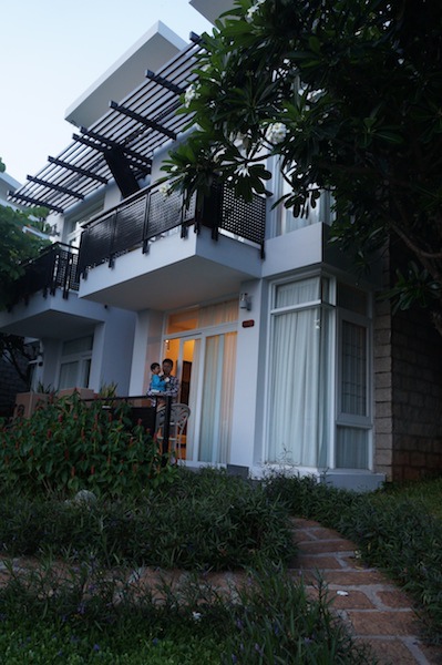 Seaside Resort Vung Tau,這裡有兩種房區,一種是整棟建築,樓層比較高,一種是兩層樓雙併的villa,我們是在villa,一樓的Deluxe房,兩棟雙層屋中間有樓梯可以上去樓上的房間。