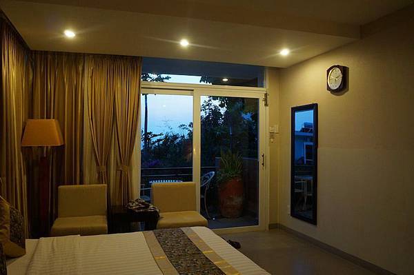 房間不大,門口的落地窗擁有很棒的海景跟花園景,超棒~這樣的房間太有度假的休閒感了~