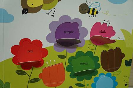 這本瀚瀚很喜歡,之前因為看了Preschool DVD,所以對顏色colors的英文有了初步的認識,所以現在看這個,我就很容易可以引導他,只要我說:red在哪裡?瀚瀚就會翻開紅色的,或是我指著紅色,然後問他,這是什麼顏色?瀚瀚會說:red!(當然,他講的不是很準的英文,但至少是正確的。)