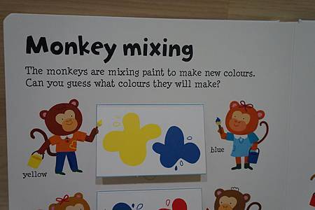 這顏色翻翻書的內容滿簡單的,主要就幾種顏色的主題變換,而不是以多種顏色呈現,這樣針對幾種主要顏色來讓小朋友透過不同方式來認識。