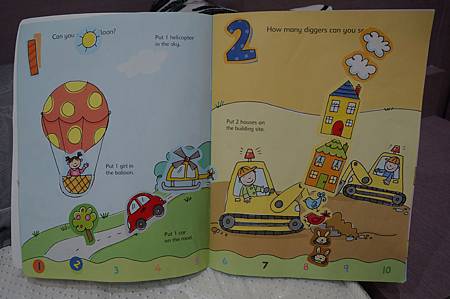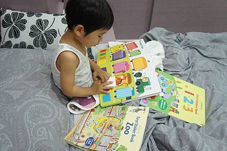 Usborne的貼紙書都是有主題的,譬如:動物園,火車,數字,英文,交通工具等等。