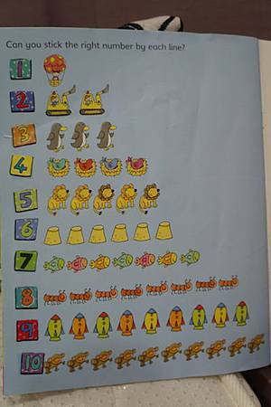 會選這本數字貼紙書,只要是讓瀚瀚認識數量,譬如,一個,兩個。。。