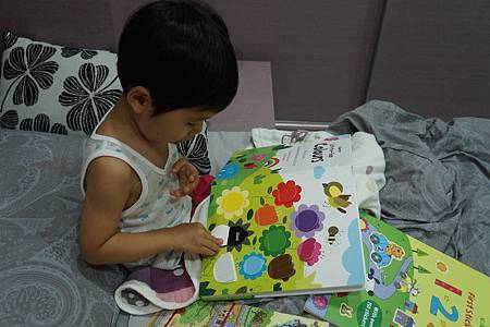 一開始就買了四本書,翻翻書跟貼紙書系列。