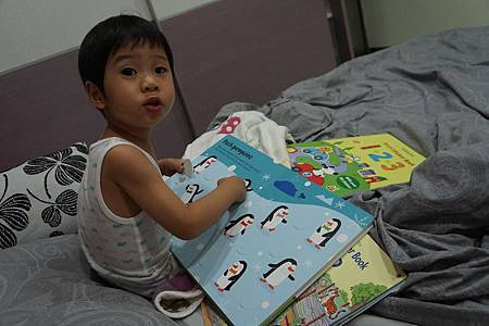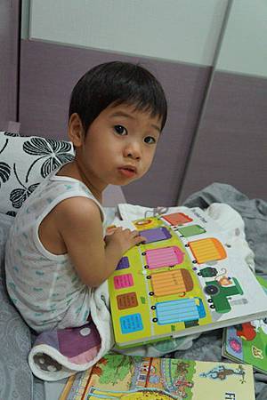 我覺得跟小小孩一起看書,雖然很多時候都是一直重複再重複,每天都是重複那幾本一直repeated, 常常看到最後自己都會睡著了,瀚瀚還興致很好~但是長久下來,偶而我在做其他事情時,眼尾就會瞄到瀚瀚自己拿書在看,嘴巴也唸唸有詞,也算是平時的勞累有點點回報啦~~