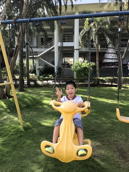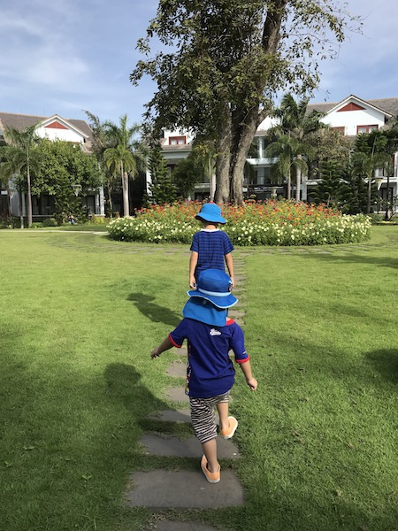環境很美的resort,越南其實有很多環境清幽,尤其是花草樹木整理得不錯的庭院,這樣的resort又在海邊,是我們家很愛的度假點。