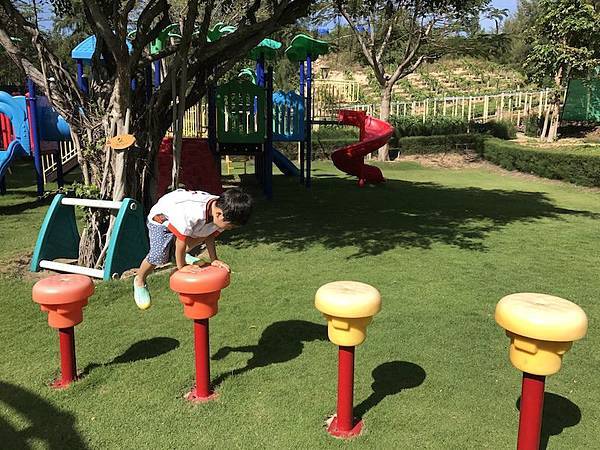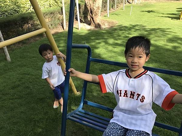 最棒的是有很大的小朋友遊樂園,而且是草地的,場景很夢幻,是瀚瀚愷愷的天堂啊~