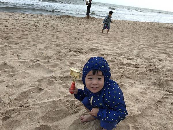 海邊resort當然也要有沙灘,玩沙之必要啊!傍晚前的海邊風都很大啊!