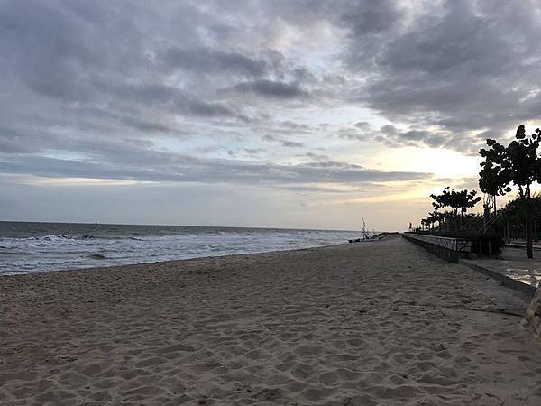 一早的海灘,太陽很大,沒人~