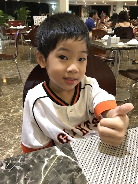 第二天晚餐我們還是來resort的餐廳吃,點幾樣菜配紅酒,兩兄弟有冰淇淋吃,度假開心!