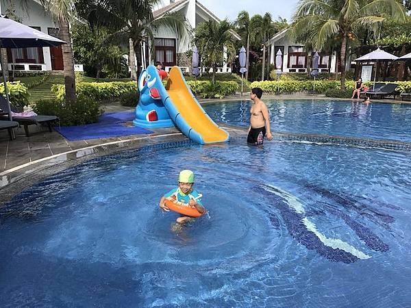 另外還有一個是在villa區裡的,最棒的是這裡的所有泳池都有兒童泳池區,且都有溜滑梯,真的是超級親子友善啊!這邊的就是淡水的。