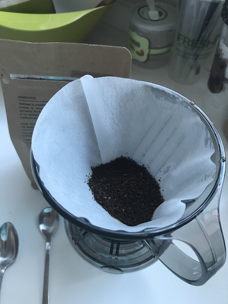 好,那我就來開始進行我人生的第一次手沖咖啡了!這個濾紙不好,下次得選不含漂白劑的。