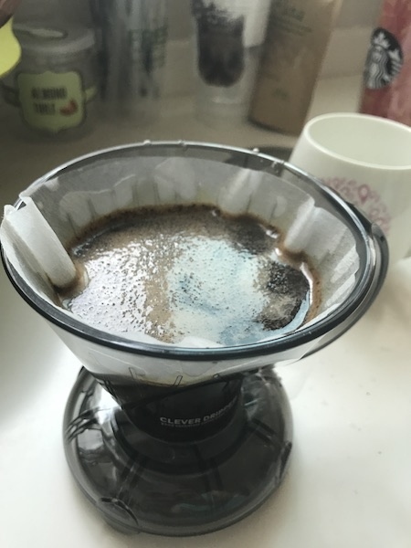倒入熱水後,蓋起來浸泡幾分鐘,這個咖啡粉跟水還有浸泡時間我還在抓,初學者需要摸索期。