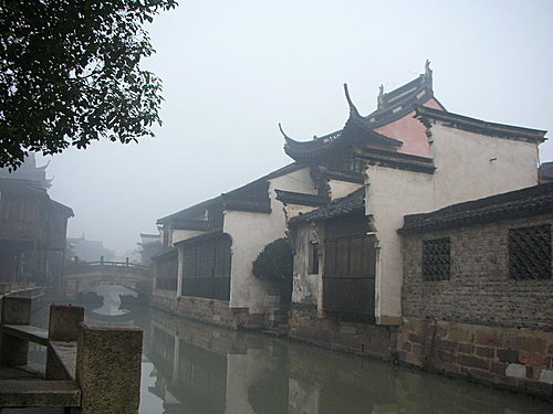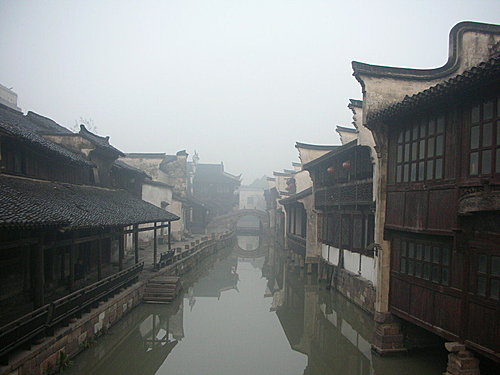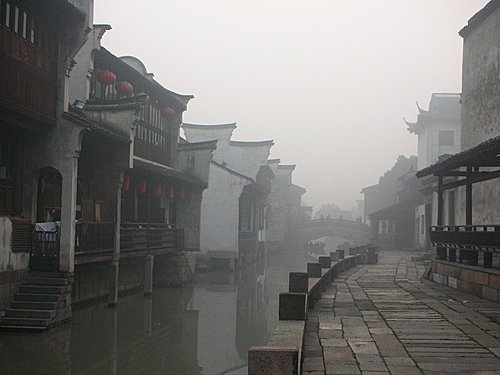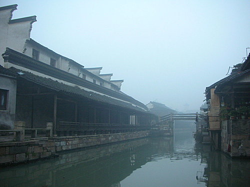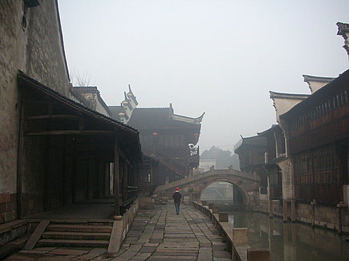 早晨的烏鎮街道霧很濃,感覺很詩意.