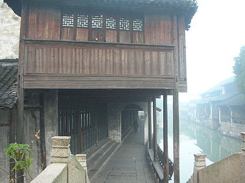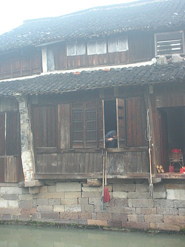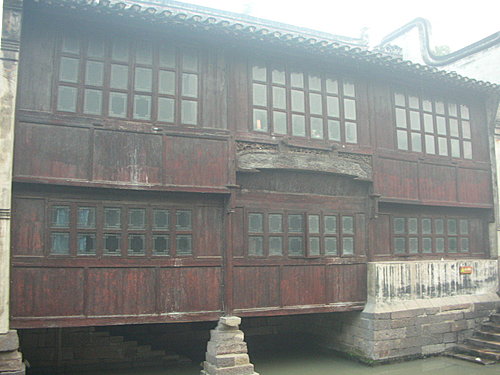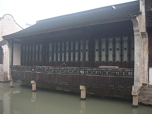 水閣是烏鎮具有特色的建築,下面用石柱或是木柱打在河床上,上面架上橫樑木板,就成為水閣了. 從地面延伸到河面上.