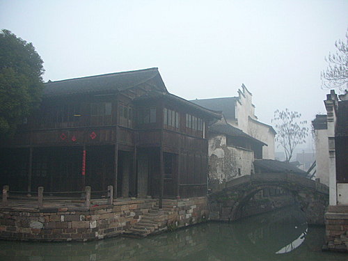到烏鎮的那天還是天氣還是霧霧的,已經過中午了,出了車站,上了三輪車,先找晚上落腳的旅社,現在烏鎮古街不讓人住宿了,只有新開發的西柵有酒店可住宿,不過收費頗高.不過在這裡找住宿不困難,除非你遇到超級假日,一般住宿約130160元就可以了.當然啦,如果要住高級一點就去西柵吧!粉貴!!