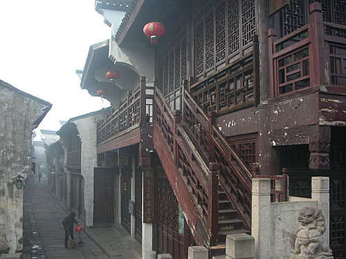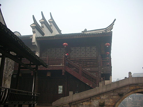 這個延伸出來的閣樓有點恐怖,只靠幾根木柱支撐,我真怕哪天不穩塌下來.不過可想見身為六大古鎮之ㄧ,以前這裡應該是寸土寸金吧!
