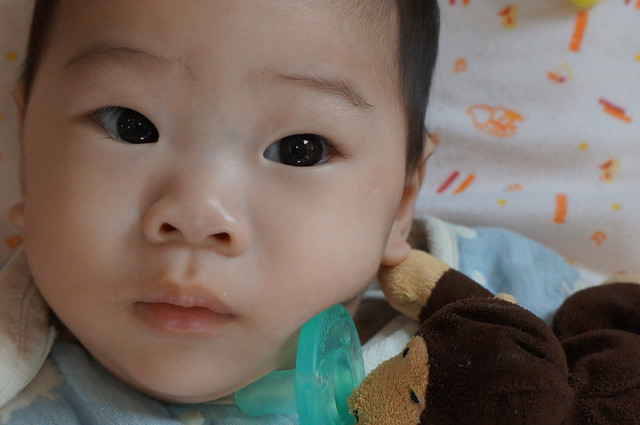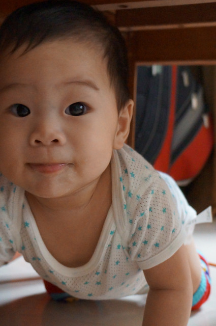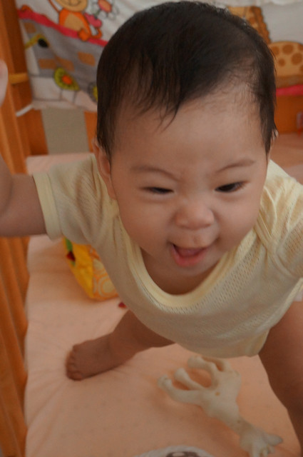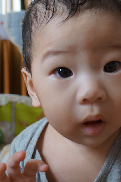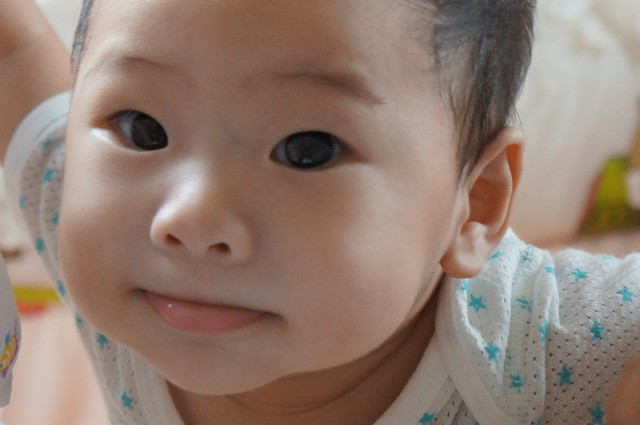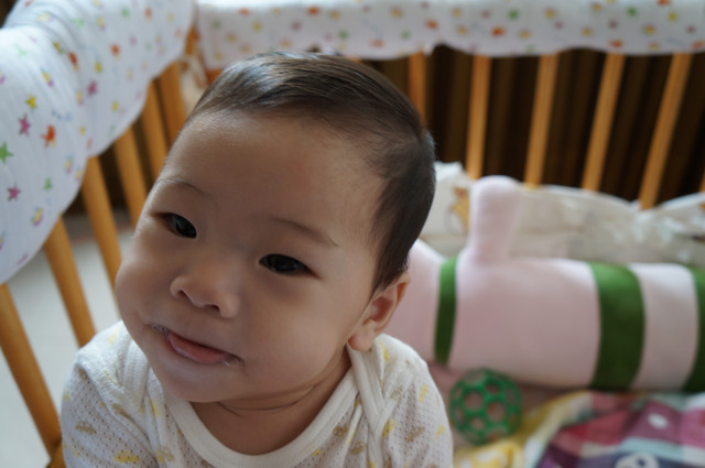 唉呦!眼神有裝可愛喔!(媽媽:瀚瀚,你是在應酬媽媽笑嗎?)