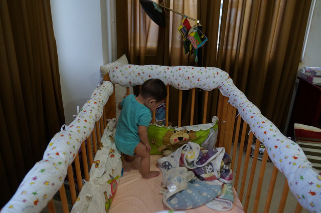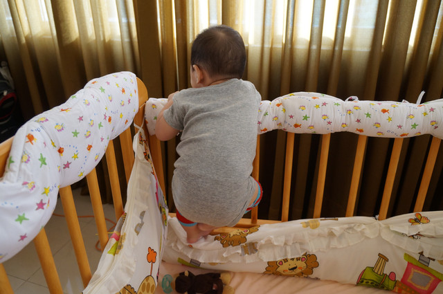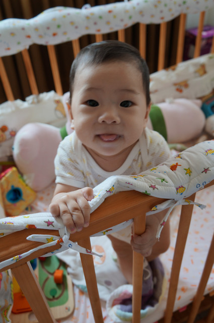 賀!最後在瀚瀚準備又要往上爬的照片先告一段落,我看床板又要準備往下調了。。。