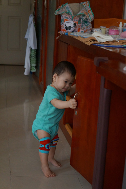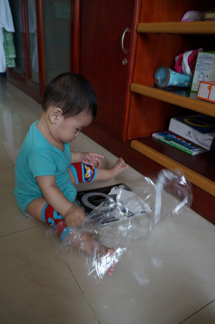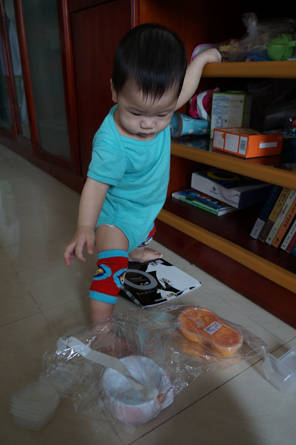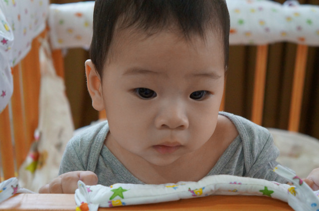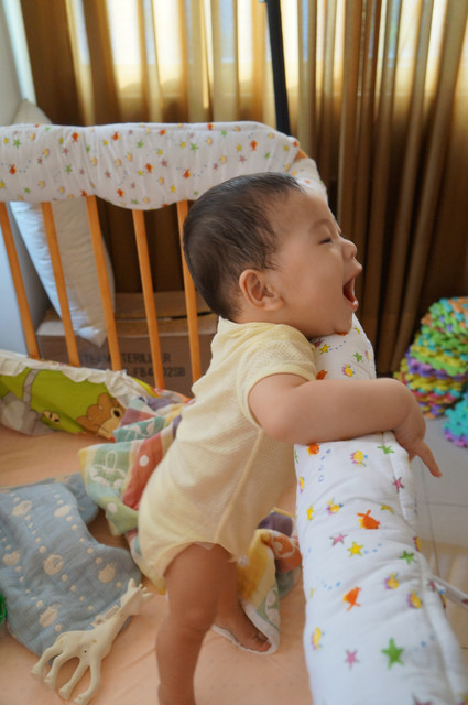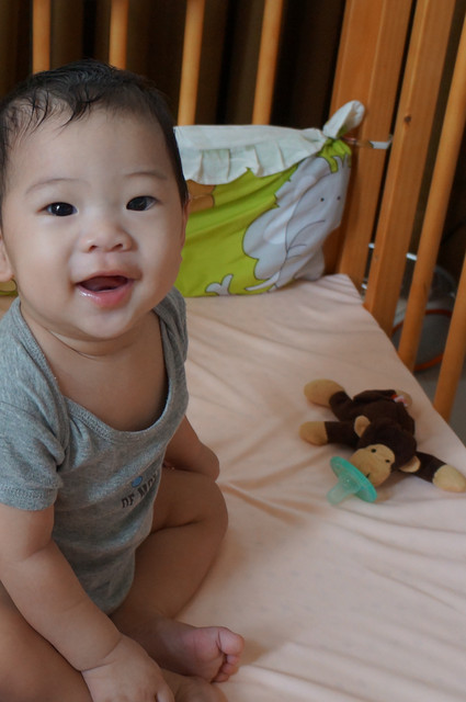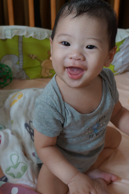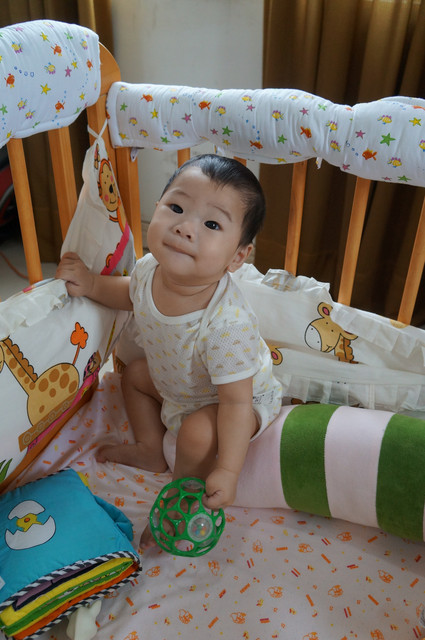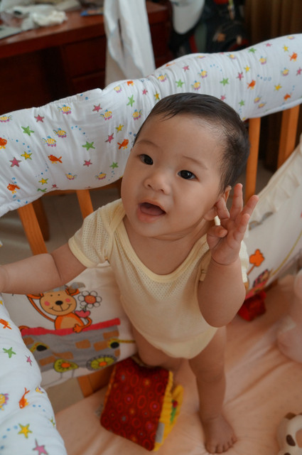 瀚瀚開始會有意識的哭了,怎麼說呢?之前是肚子餓或想睡覺或想要人抱會哭,現在,可能聽的懂一點話,可能有點分離焦慮症,可能會認的他媽了,只要我說拜拜,不抱他,有時他就會嘴巴往下癟,準備要哭了,哈哈,好可愛。。。。