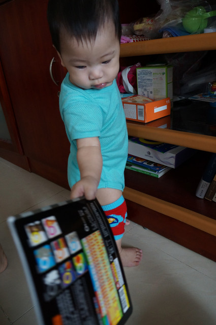 這個姿勢是,CD正在播放用英文介紹交通工具,每次瀚瀚聽到,都會突然很安靜(是說,媽媽又找到一個新招,呵呵。。)