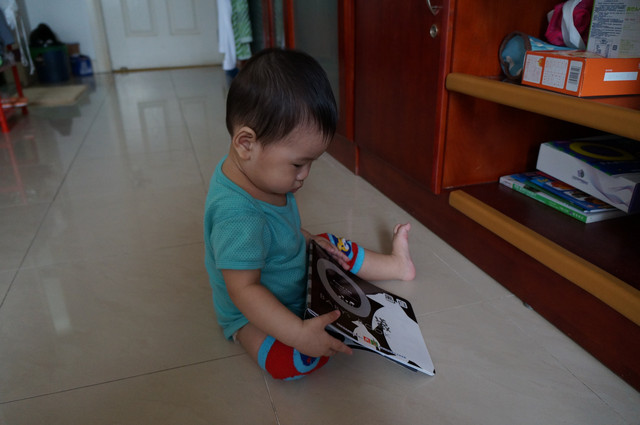 馬麻:瀚瀚,好乖喔,坐下來看書喔