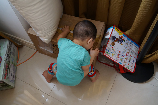 什麼都要吃的瀚瀚,紙箱也不放過。。。