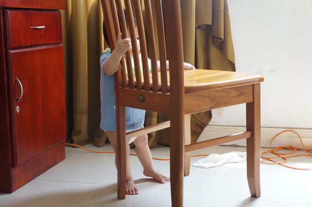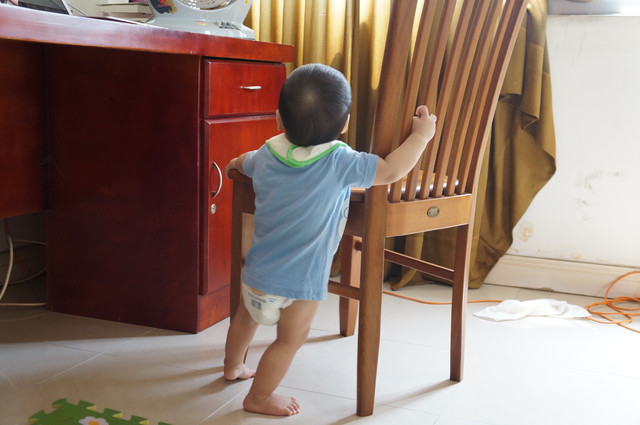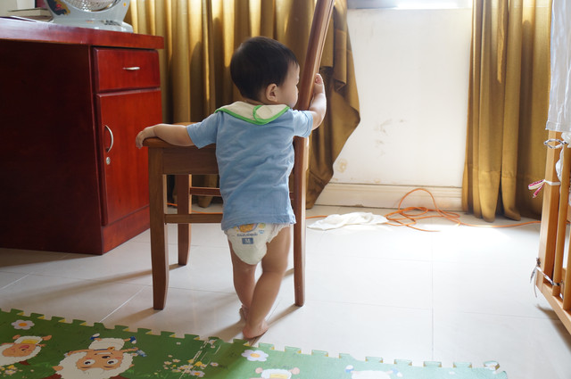 一邊拉,一邊用腳跨步(這樣也是學走路的一招嗎?