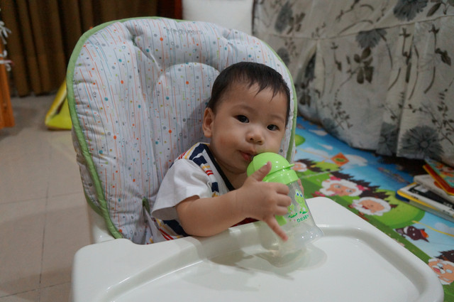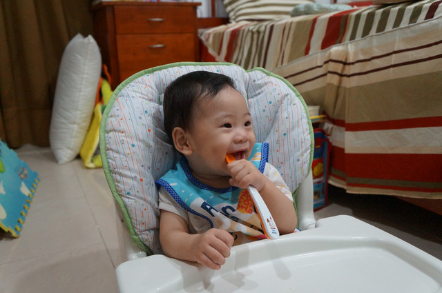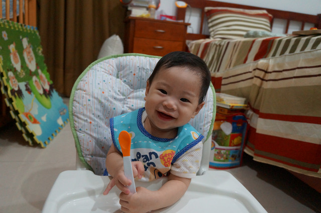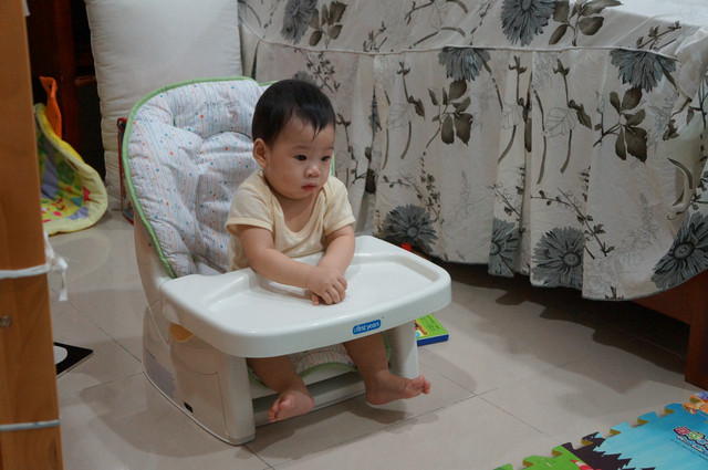 每次時間一到,把餐椅拿出來,大多會自動爬過來,乖乖等吃。。呵呵。。。