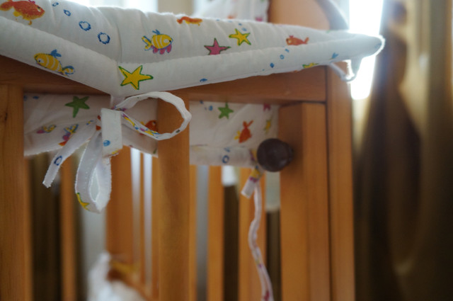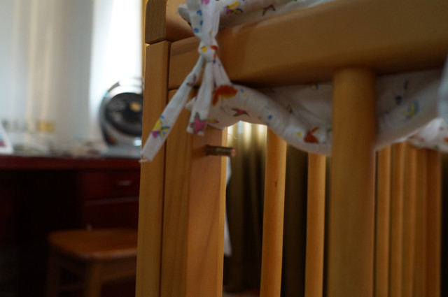 嬰兒床床欄兩邊會有這個小螺絲轉進床欄,以便打開。