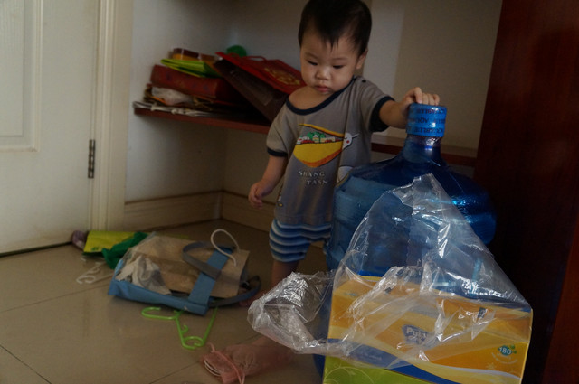 馬麻:瀚瀚,怎麼把東西全都丟在地上啊,弄的亂七八糟耶怎麼這樣啊?!