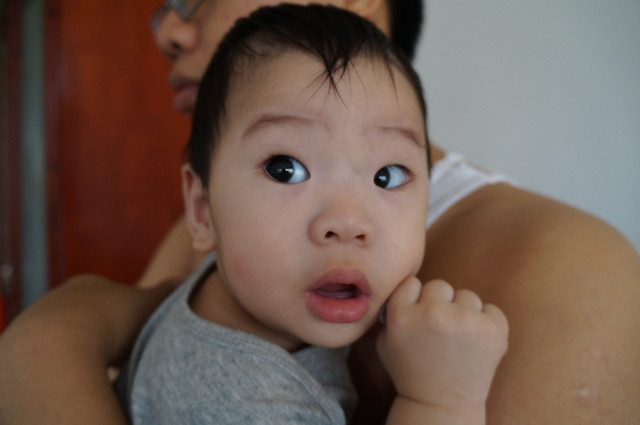 還好,七個半月時,終於找到保母,減輕我一半的疲累,可以好好上班,不過,常常整天沒看到馬麻的瀚瀚,只要一有機會看到馬麻,就會哇哇哭,伸手要馬麻抱